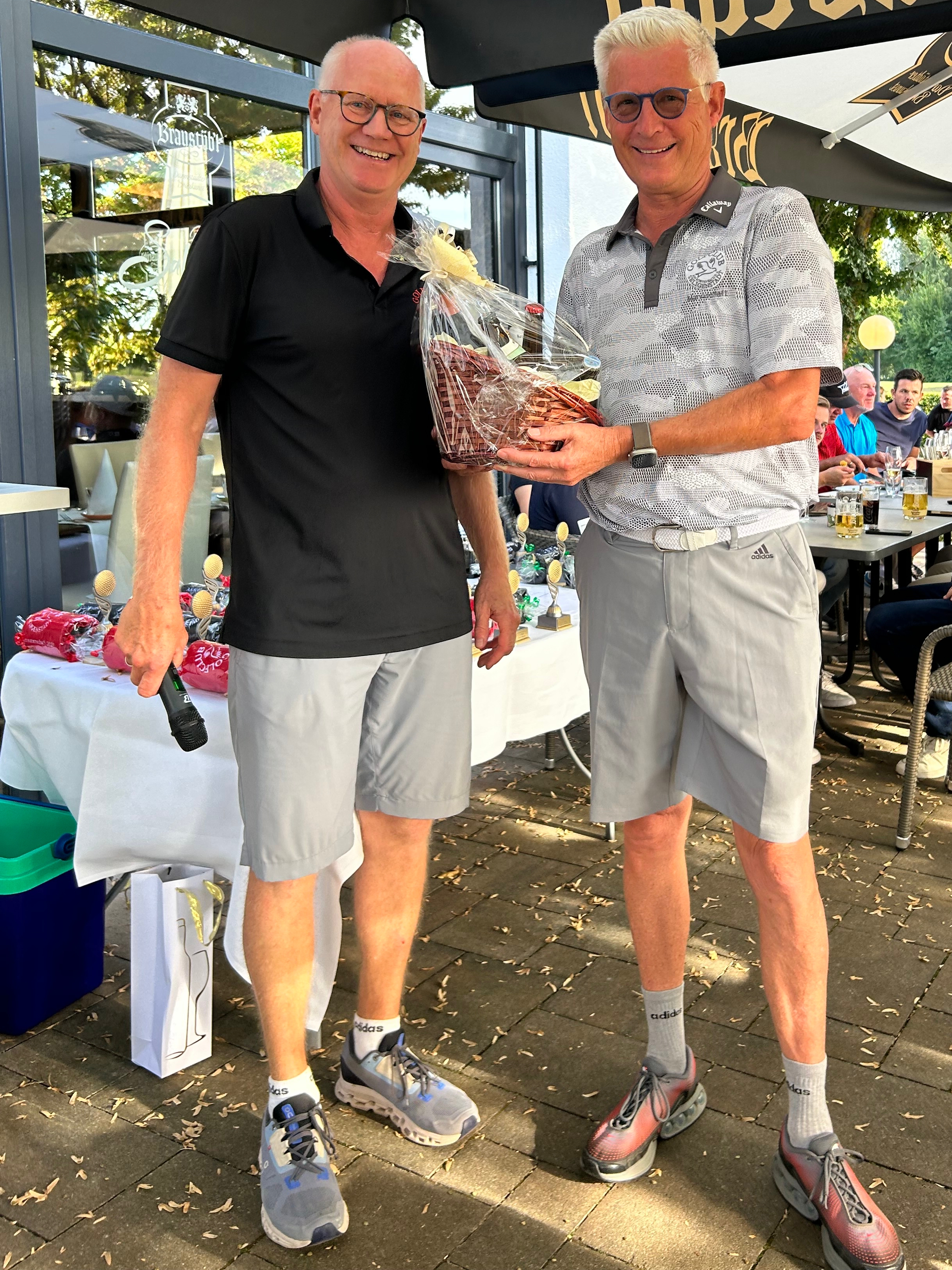 Roland Kutzner wurde für seine überaus erfolgreiche Golfsaison 2025 geehrt und durfte sich über einen wohlgefüllten Freßkorb freuen. Nachdem er sich im letzten Jahr noch mit dem zweiten Platz bei den Hessenmeisterschaften zufriedengeben musste, hatte er sich im Mai dieses Jahres den Titel „Hessenmeister AK65“ erspielt und im Juni dann bei den "Deutschen Meisterschaften" einen hervorragenden 4. Platz … und das sollte - siehe unten - nicht die letzte Top-Platzierung gewesen sein....