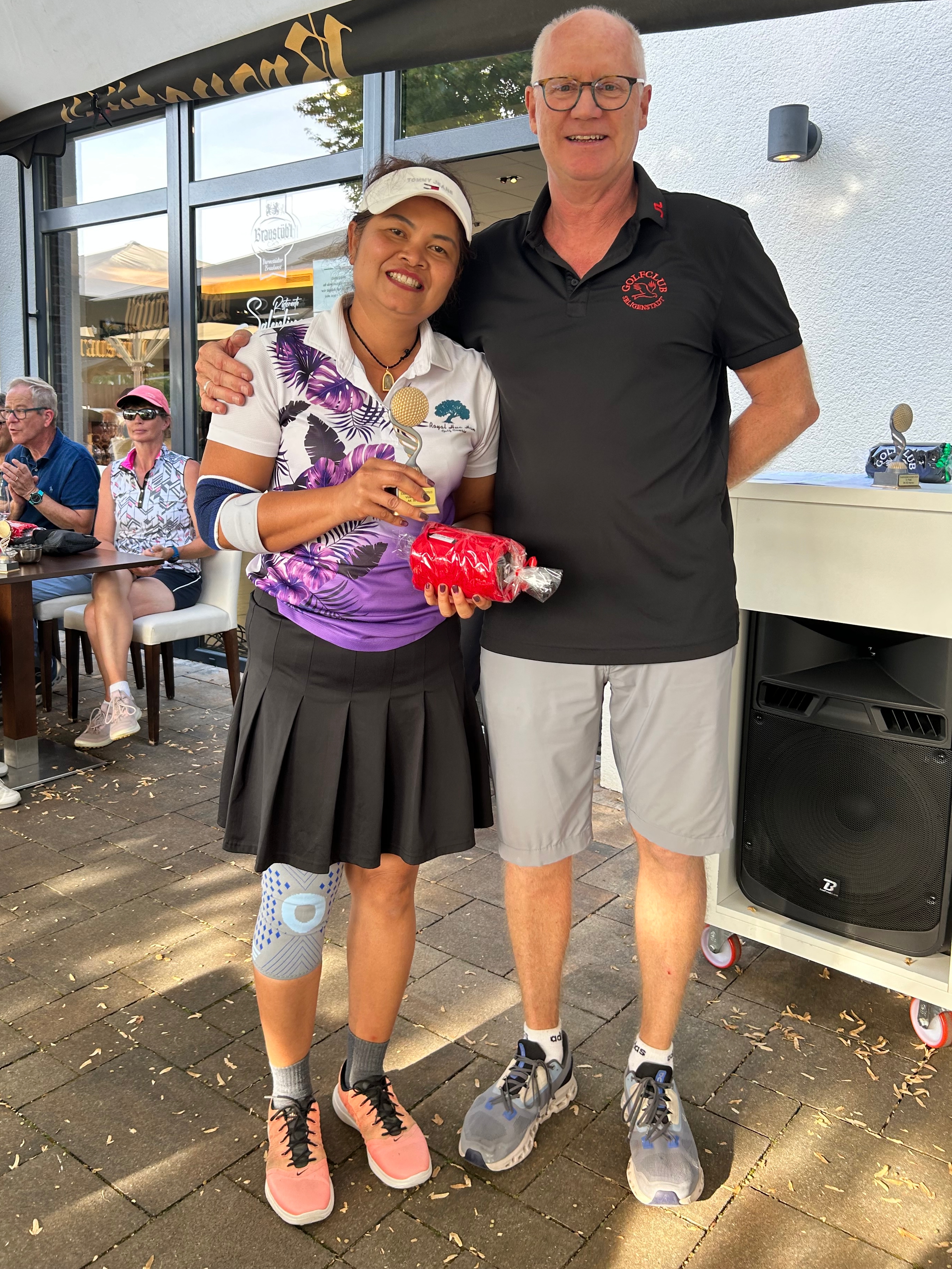 Lag es am Verlauf des Turniers, der am Sonntag guten Allgemeinstimmung oder dem Wetter? Der vom Vorstand - wie gewohnt - gestiftete „Durstlöscher“ für die Damen und Herren reichte nicht bis zur Siegerehrung auf der Clubhausterrasse … und so wurde kurzentschlossen drauf- bzw. nachgelegt.