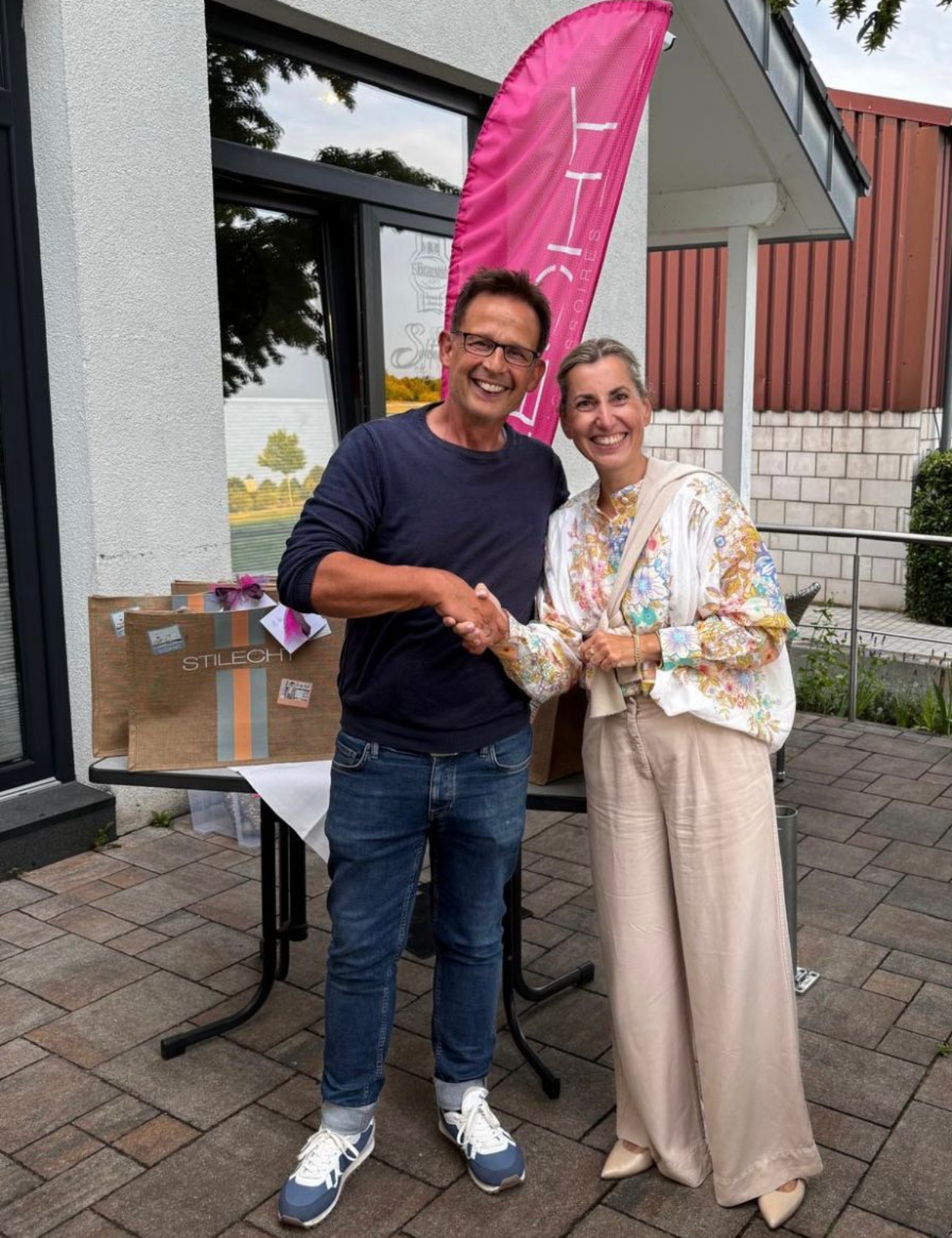 Über die rege Teilnahme freute sich Sponsorin und Inhaberin der Boutique "Stilecht" Nadine Bergel-Dunkel - hier mit unserem 1. Vorsitzenden Marco Scheffel (Foto oben links). Und über ihre „stilechten“ Preise freuten sich alle Gewinnerinnen. Auf den Termin des 2. Stilecht-Damengolfs im Jahr 2026 werden wir gesondert aufmerksam machen.