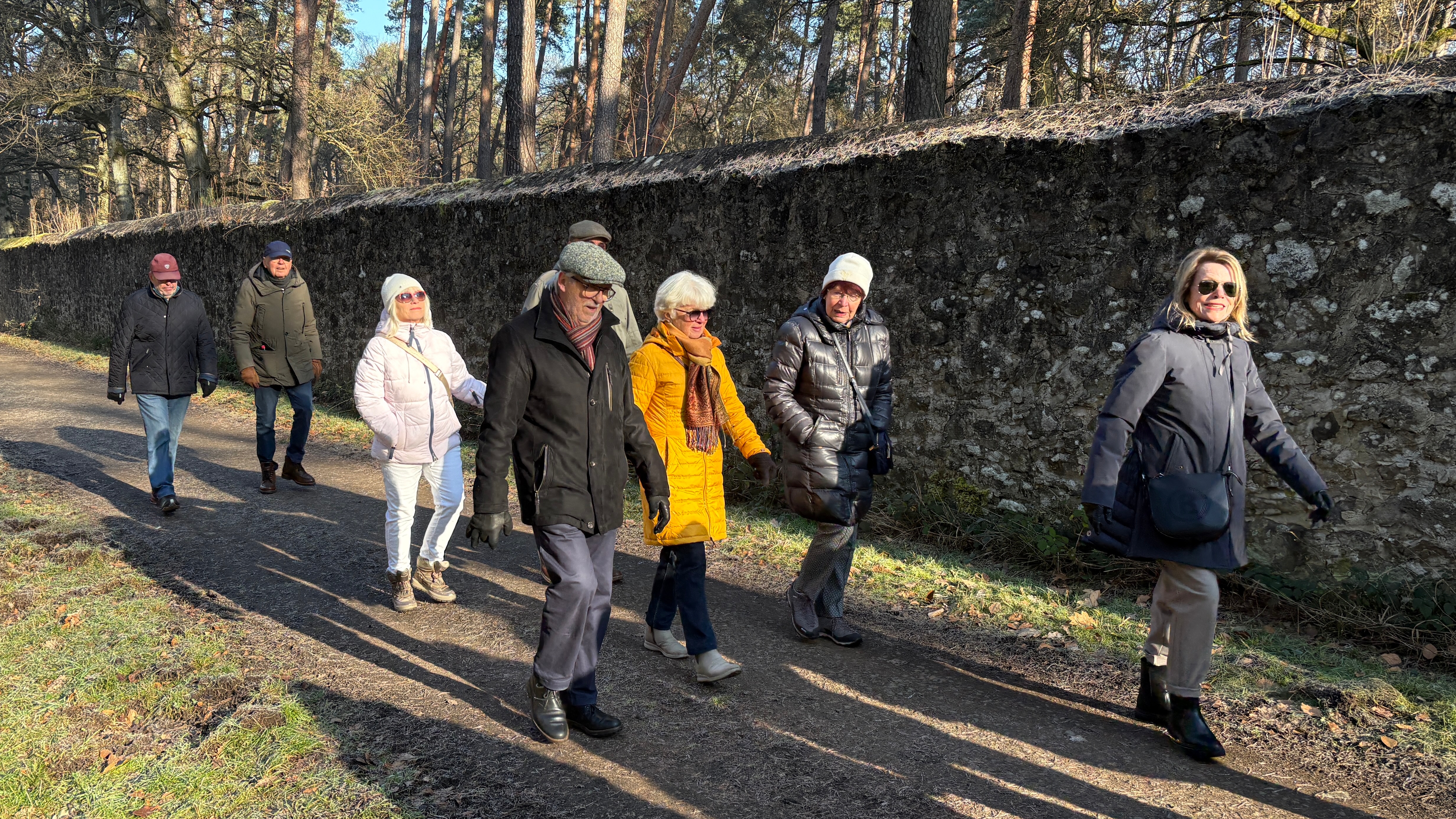Um 11 Uhr starteten rund 20 Seniorinnen und Senioren zu einem gut 4 km langen Spaziergang um den Wildpark. Aufgrund der niedrigen Temperaturen waren die Wege zwar gefroren, aber dank der trockenen Kälte dennoch sehr gut zu laufen.